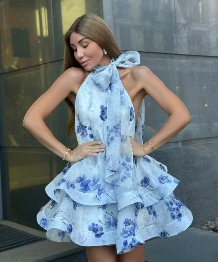 Que ce soit pour une garden-party, un cocktail estival ou une escapade romantique, cette robe est votre alliée idéale. Ses plis délicats et son tissu fluide créent un mouvement aérien à chaque pas, comme une danse légère au rythme de vos journées ensoleillées. Disponible en deux coloris floraux (rose pastel ou bleu lavande), elle incarne la fraîcheur d’un été bohème chic.