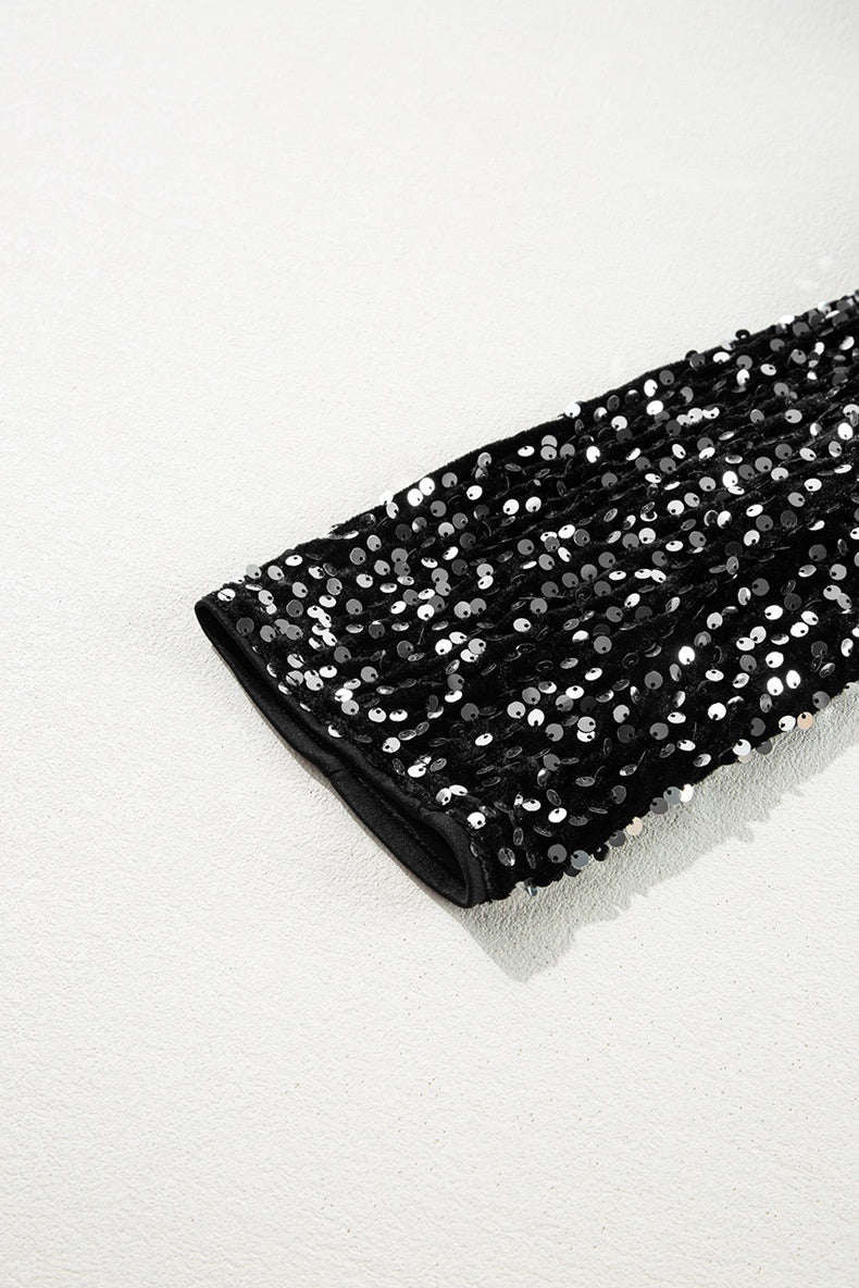 Cette veste courte incarne le glamour et la sophistication grâce à son tissu entièrement orné de sequins brillants. Chaque détail a été pensé pour capturer la lumière et offrir un éclat irrésistible, idéal pour celles qui souhaitent se démarquer lors d'une soirée ou d'un événement spécial. Son design raffiné allie modernité et élégance, apportant une touche luxueuse à toute tenue.