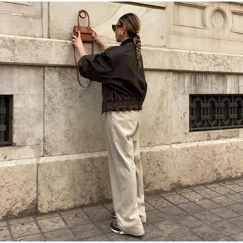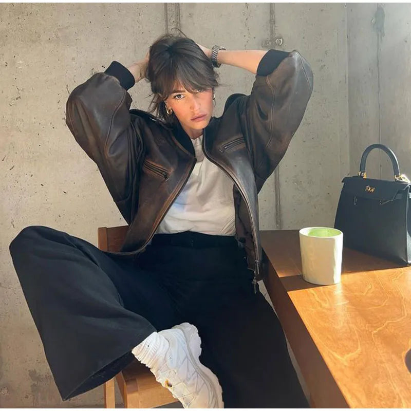Matériau de Cuir synthétique ou véritable (selon modèle) avec une finition vieilli qui lui donne un aspect vintage et authentique. avec un Design Coupe aviateur classique, inspirée des blousons de pilote des années 40.Poches Deux poches zippées à l'avant avec détails cousus pour un rangement pratique et sécurisé.Bords Poignets et ourlet côtelés pour un ajustement confortable et une meilleure protection contre le froid.